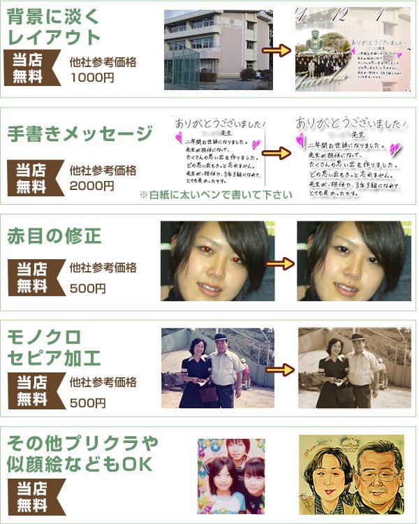 写真枚数・画像にどんな加工(合成・背景切りぬき等)をしても追加料金が不要です!