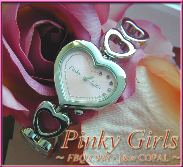 ピンキーガールズの代表的モチーフである【ハート】フォルムの清楚なブレスウォッチは