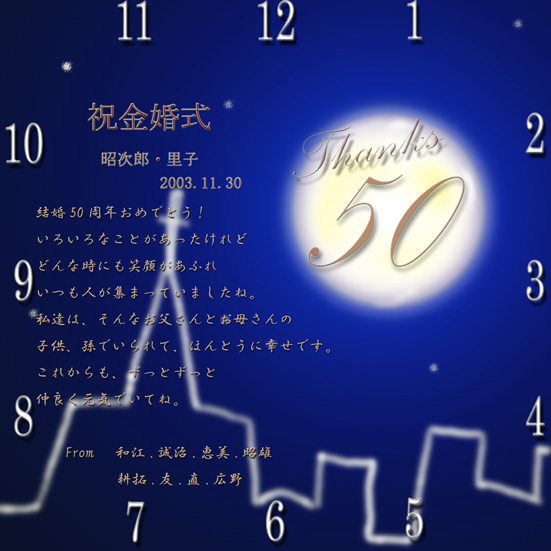 最初は、HPを見て「ステキな時計!記念になるわ!」と